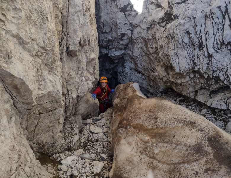 Il massiccio del monte Canin, alto 2587 metri, si trova nel cuore delle Alpi Giulie, è composto da un calcare di eccezionale purezza, una caratteristica che permette a elementi come il ghiaccio, l’acqua, il vento e lo scorrere del tempo di modellare la roccia in profondità. Così nascono intricati sistemi di gallerie, passaggi e veri e propri “paesaggi sotterranei”, nascosti nell’oscurità della montagna. A partire dal 1961, questo ambiente ha dato origine a una straordinaria stagione di esplorazioni.